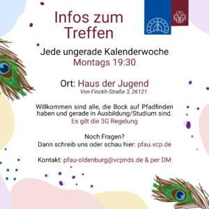 Leider ist die PfAU Gruppe in Oldenburg über Corona wieder eingeschlafen. Wir hatten uns immer im Haus der Jugend getroffen. Du hast Lust die wieder aufleben zu lassen? Dann melde dich bei uns! Kontaktformular.
