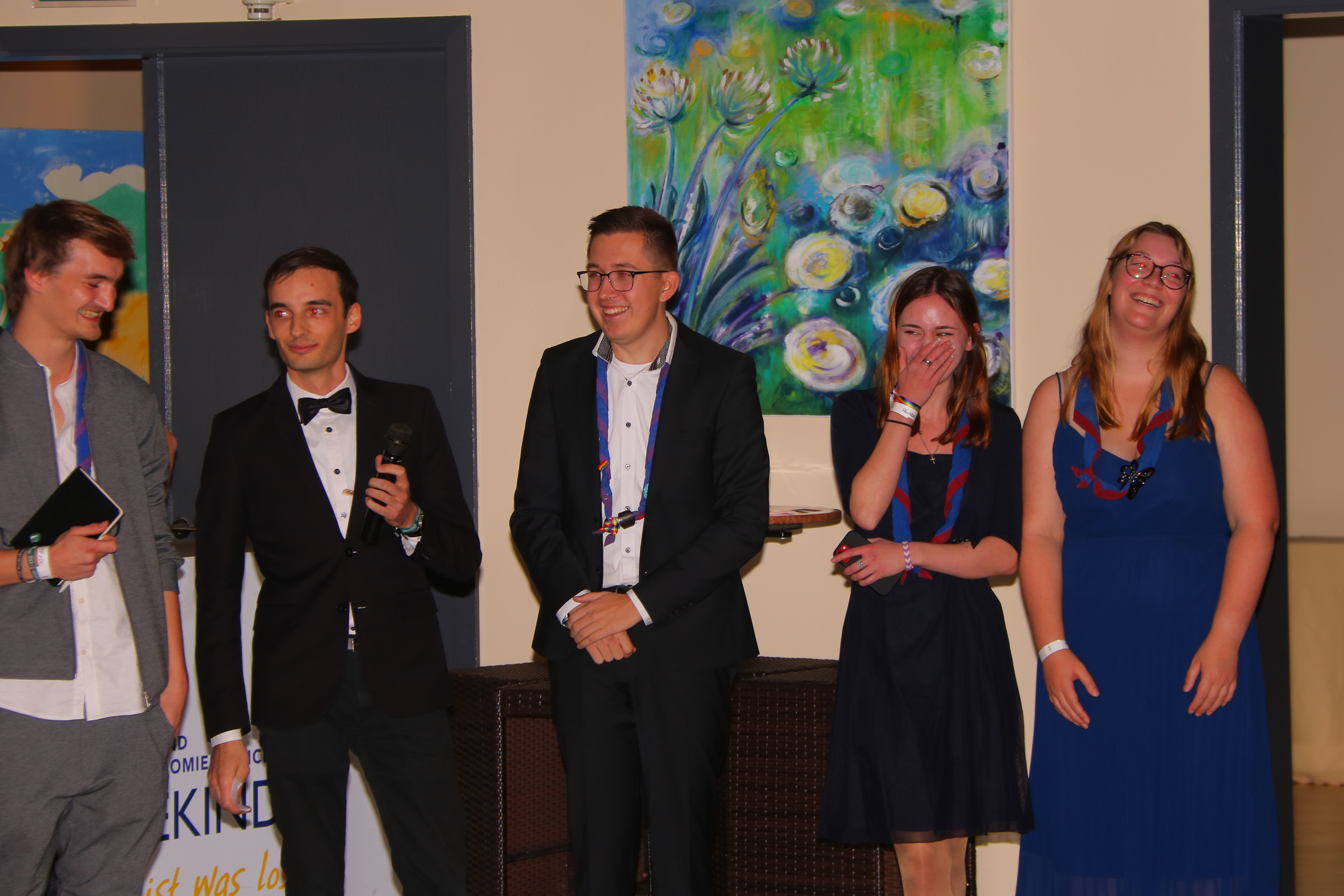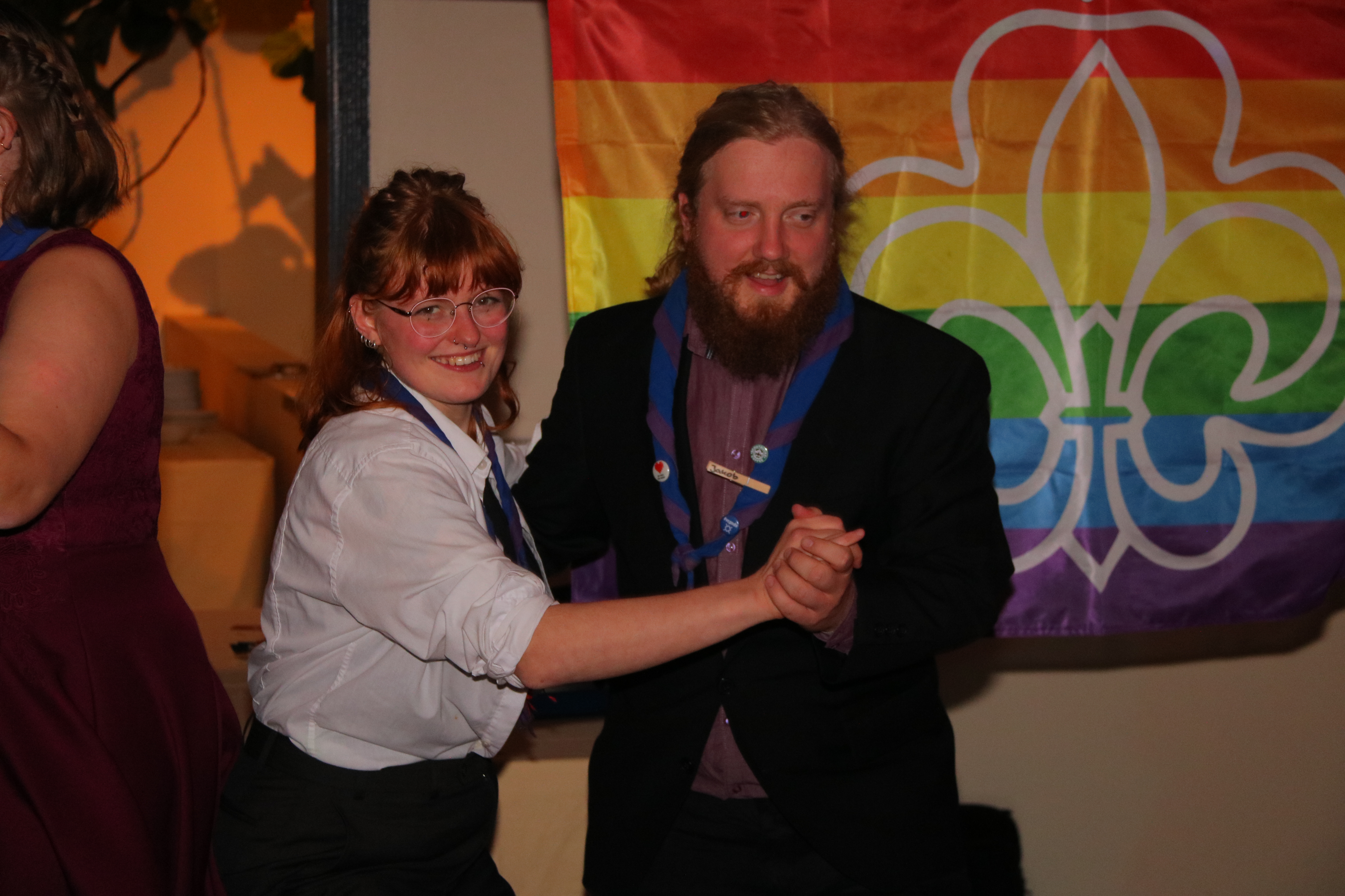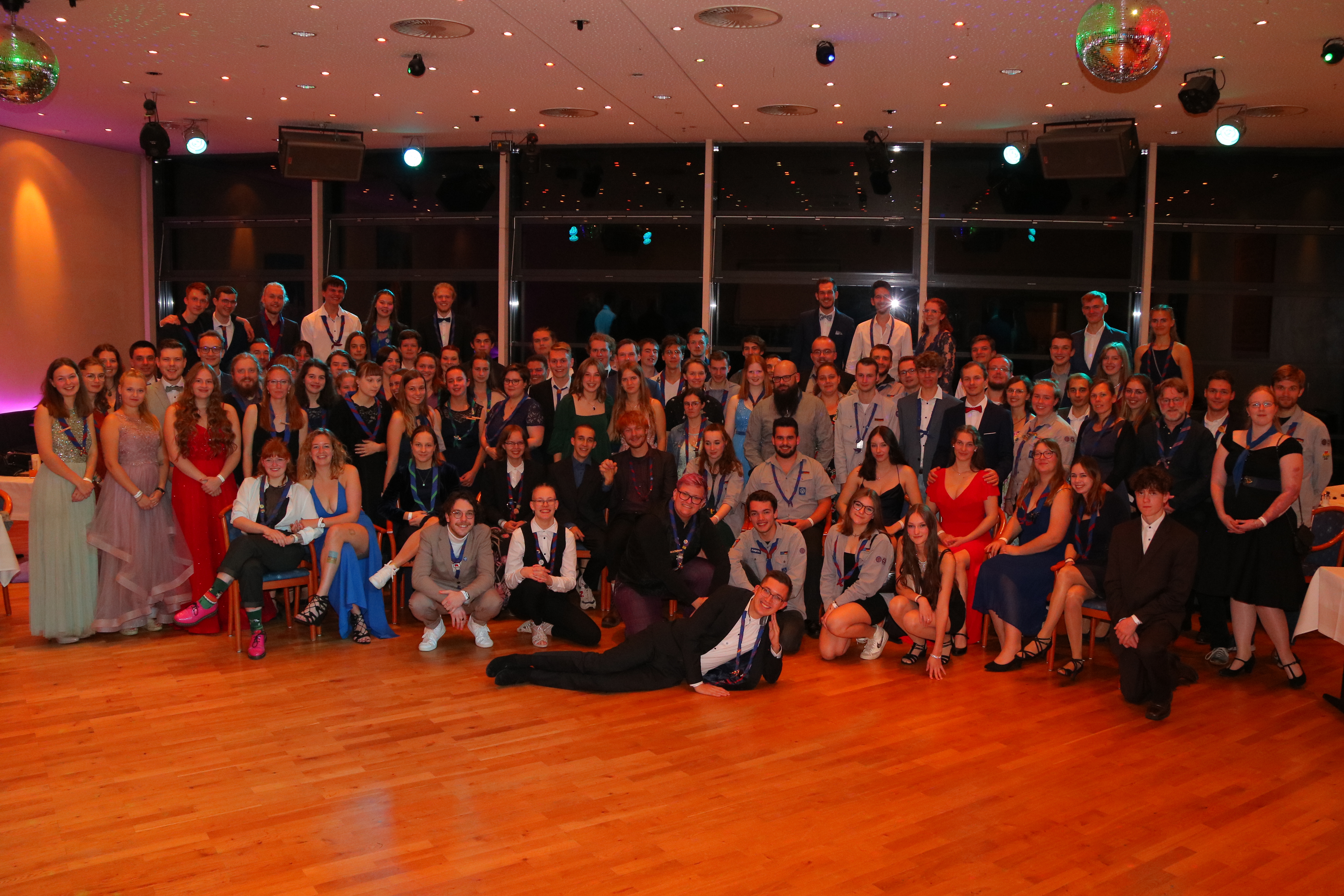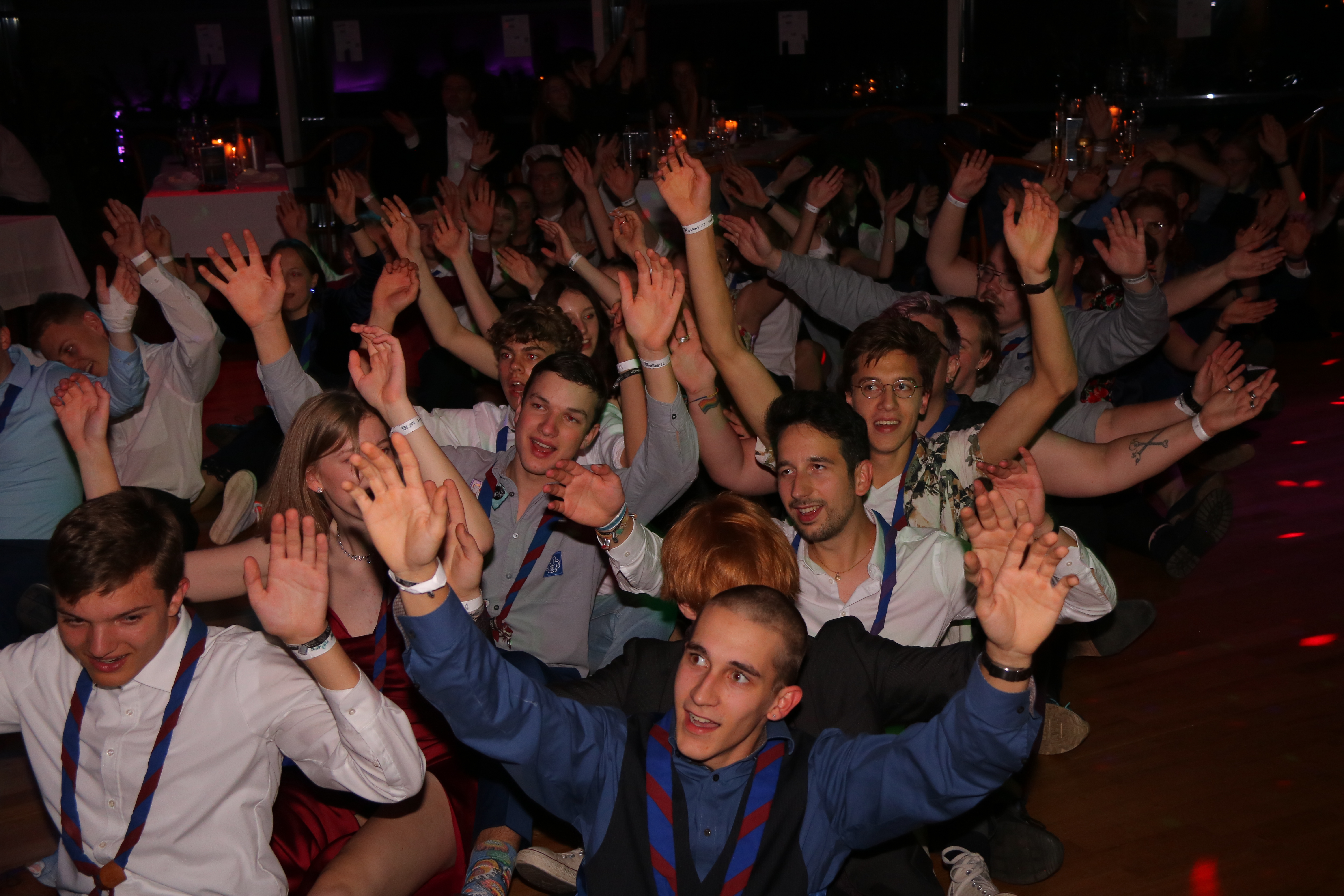 100 Pfadis waren da und haben ihn miterlebt, den Pfadiball. Anders als wir (das liebe Orgateam, bestehend aus Marvin, Lea und Leonie) erwartet haben, war der Saal kurz nach Beginn proppenvoll. Denn ein paar Tage vor Veranstaltung wurden noch Plätze nachgebucht und wir schossen weit über unsere erwartete Teilnehmendenzahl hinaus! So viele Pfadis, schick in Ballkleid mit Rucksack auf dem Rücken oder in Kluft, sowie im Anzug. Alle natürlich mit ihrem Halstuch geschmückt. Ein komplett anderer Look als sonst.